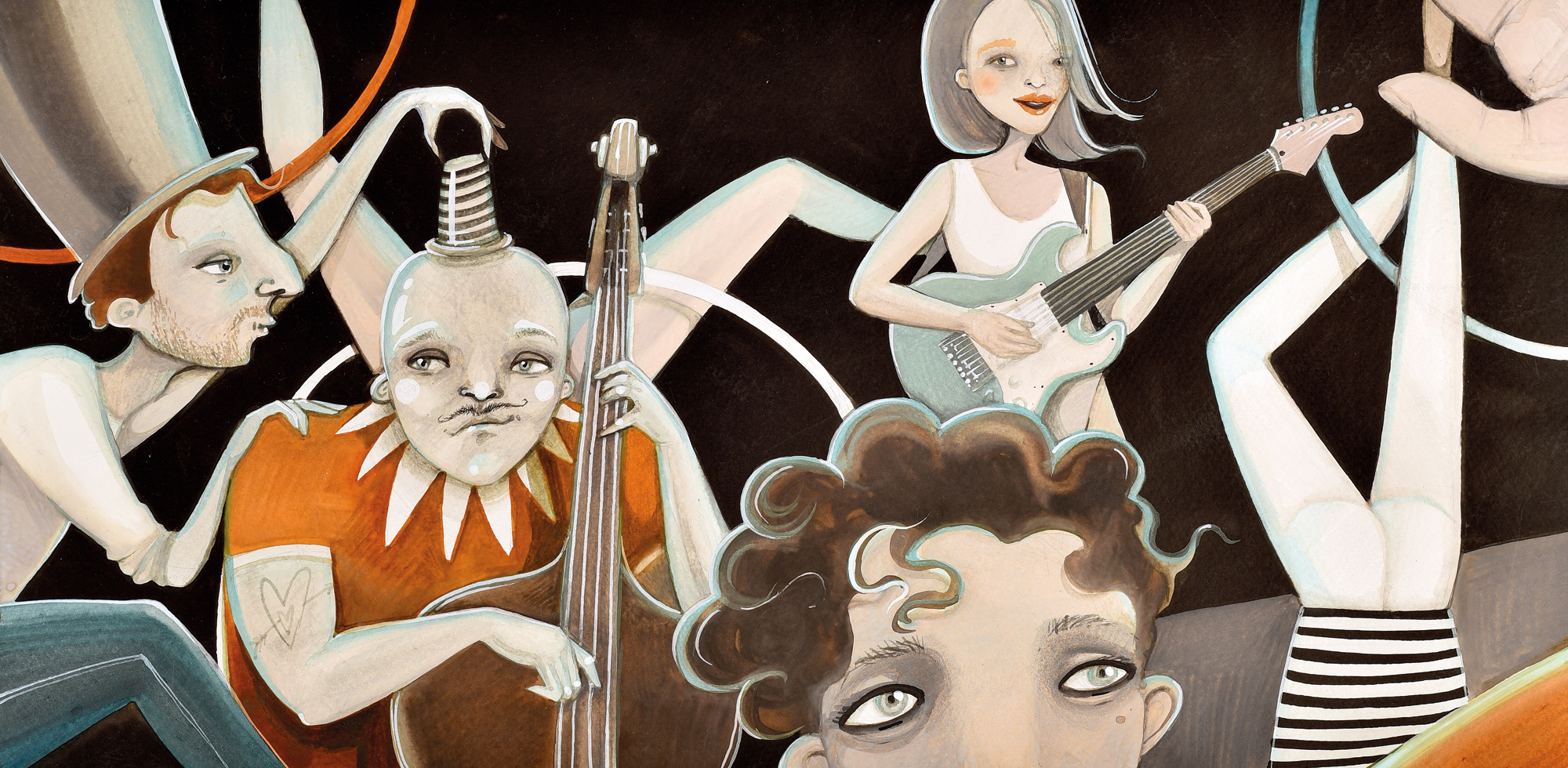 I am using mostly aquarell on paper and other traditional techniques. I run my own brand Triple Fingers, under this label you can find my own products, illustrations and handmade toys, but additionally you can discover my tattoo works, which I've been doing for the past eight years