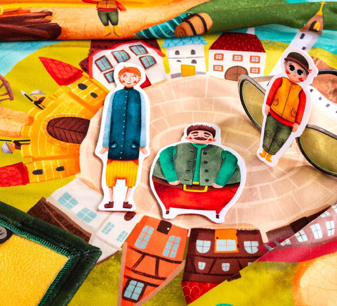 Mala som vytvoriť vlastné znázornenie rozprávky Dlhý, Široký a Bystrozraký na rozmej veľkej deky, ktorá by sa využívala na hranie. K deke som vytvorila samostnané postavičky hlavných hrdinov rozprávky.